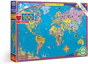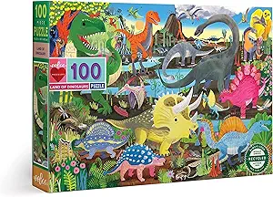 eeBoo is the puzzle brand that makes you stop and actually look at the box before you even open it — and that’s entirely intentional. Their artwork is sourced from independent illustrators and artists, giving each puzzle a distinctive, gallery-quality feel that’s miles away from generic licensed imagery. Our team tested the eeBoo Land of Dinosaurs 100-piece floor puzzle and came away genuinely delighted. At 24 x 16 inches finished, it’s a true floor puzzle that gives kids room to spread out, sort pieces spatially, and think through the image in a way that smaller puzzles don’t allow. The pieces are glossy and snap together with a clean, confident click — less cardboard dust than many competitors and no frustrating near-fits. eeBoo puzzles are particularly strong for children ready to move beyond toddler puzzles, offering the right balance of challenge and achievability. Beyond the dinosaur design, eeBoo’s catalog spans nature, geography, animals, and whimsical illustrated scenes — all produced with an artistic sensibility that makes the finished puzzle something worth displaying. For parents who care about beautiful objects in their home, eeBoo puzzles feel like a legitimate upgrade.