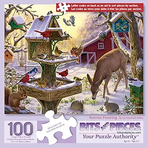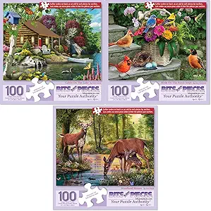 Bits and Pieces earns a permanent spot in our recommendations, specifically for two underserved audiences: seniors and puzzle newcomers who want a welcoming, frustration-free experience. As Bits and Pieces notes on their own site, their 100-piece puzzles are designed with accessibility in mind — the piece size skews larger than average, which is a meaningful advantage for anyone with reduced dexterity or hand mobility. But what really sets them apart is the clever letter-coding system on the backs of pieces, which lets puzzlers sort by section before they even begin. That single feature transforms the experience for someone who finds the typical “dump and sort” approach overwhelming. Their puzzles are made from recycled cardboard that resists bending under repeated handling, and the imagery leans toward comforting, beautiful subjects — landscapes, cottages, garden scenes, wildlife — that feel genuinely relaxing to build. We tested their value multi-pack sets and were impressed by both the consistency of quality and the variety of images offered. For a grandparent, a senior center activity room, or anyone looking for a mindful and gentle way to spend an afternoon, Bits and Pieces delivers with real care.