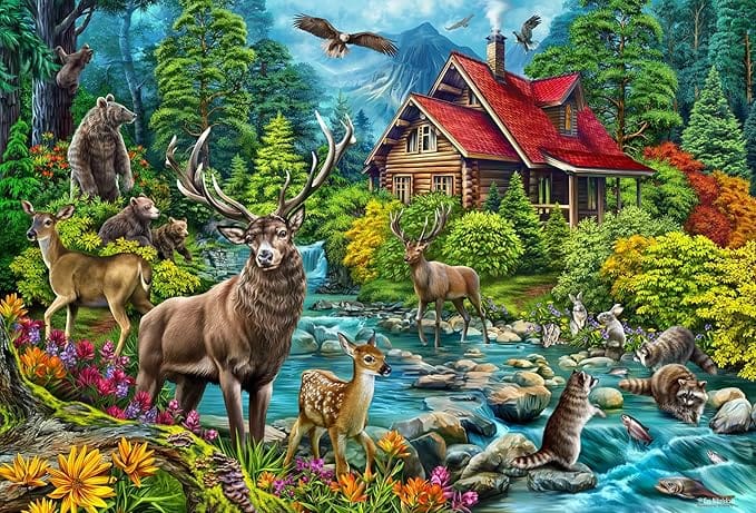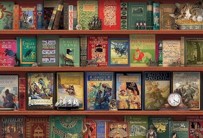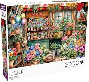 Cobble Hill is the brand our team reaches for when we want a puzzle session that genuinely tests us — not just our patience, but our spatial reasoning and attention to shape. Founded in 2005 and proudly manufactured in North America, Cobble Hill built its reputation on one defining feature: random-cut pieces. While most brands use repeating ribbon-cut patterns where knobs and holes follow predictable grid logic, Cobble Hill’s die cuts produce pieces that are all genuinely different from one another. There is no falling into a rhythm of “bump-left, hole-right” — every piece demands its own evaluation, which means the solving process stays mentally stimulating from piece one to the very last corner. The materials reinforce this premium feel: 100% recycled blueboard at roughly 1.7mm thickness, textured linen-finish paper that kills glare under any light, and vegetable-based inks that keep the imagery crisp without fading. Their finished 2,000-piece puzzle measures 39.25″ x 26.62″ — just slightly larger than most competitors — and comes with a reference poster for every puzzle produced after 2018. The image catalogue leans into collages, nature scenes, and whimsical art that look as good framed on a wall as they do laid out on a table. For puzzlers who have outgrown the predictability of standard cuts, Cobble Hill is the logical next step.
