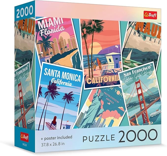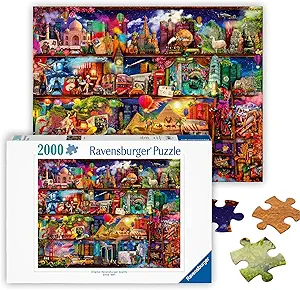 Trefl is a family-owned company based in Poland that has been manufacturing puzzles since 1985, and their 2,000-piece Red Series is where European puzzle craftsmanship meets a genuinely spectacular library of travel imagery. If your dream puzzle features the sun setting over Venice, the reflections of Haifoss Waterfall in Iceland, or the lantern-lit streets of Dubai, Trefl almost certainly has the version you are picturing — and at a price point that makes collecting multiple titles completely reasonable. The pieces themselves are produced at one of the three largest puzzle factories in Europe, and the quality reflects that scale: thick, durable cardboard with a smooth, satisfying feel in the hand, combined with an anti-reflective linen-structured paper that keeps the image sharp and easy to read. Our team was particularly impressed by how consistently the pieces interlocked — there is a soft, positive snap that feels close to Ravensburger territory at a noticeably lower price. Each 2,000-piece puzzle finishes at approximately 38″ x 27″, and the vivid, travel-focused photography translates beautifully at that scale, turning the sorting process into something that genuinely feels like a geography lesson. If you want to build a collection around the world’s most beautiful places and do not want to compromise on piece quality to do it, Trefl is a remarkable find.