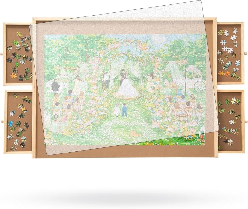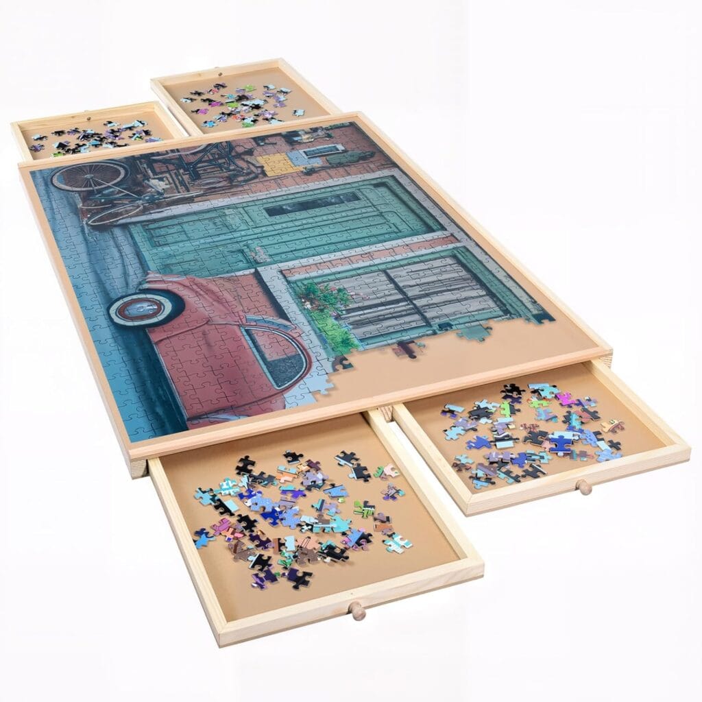 Another major benefit we discovered relates to organization. Many wooden puzzle boards include reinforced sliding drawers that allow you to separate puzzle pieces by color and shape, or even pull drawers out to work on sections while sitting comfortably on the couch. This kind of flexibility makes longer puzzle sessions much more enjoyable.