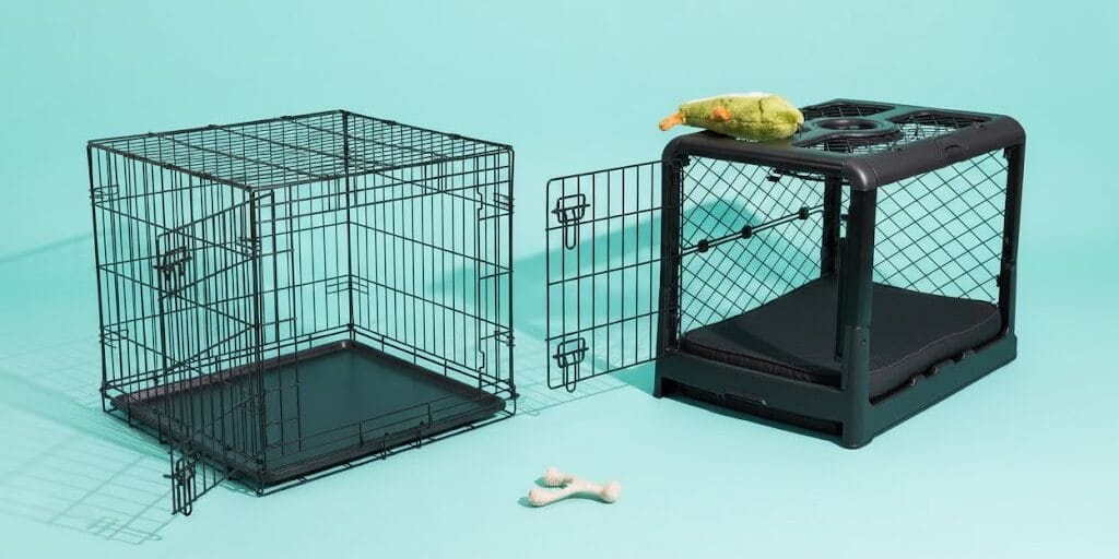 For Puppies: Wire crates with dividers are your best bet. They’re affordable, grow with your pup, and provide the ventilation and visibility that help with training. The MidWest iCrate has been our go-to for every puppy we’ve fostered.
