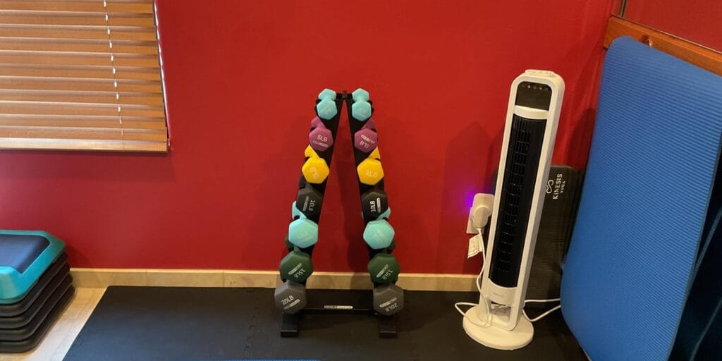 Ceiling height rarely causes issues with dumbbell racks, but we encountered one situation where a particularly tall A-frame rack barely fit under a low basement ceiling. If you have unusually low ceilings below seven feet, verify rack height specifications before purchasing.