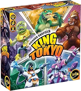 King of Tokyo is the game we’ve watched convert the most self-described “board game skeptics.” You’re playing giant monsters — Gigazaur, Alienoid, and The King — battling for control of Tokyo, rolling custom dice, and collecting energy to buy power-up cards. The dice mechanism (roll, keep, re-roll up to twice — familiar if you’ve played Yahtzee) makes it immediately accessible without feeling derivative. What sets it apart is the central tension: whoever occupies Tokyo gains points faster but takes damage from every other monster. The pressure to hold the city, or bail out at the right moment, creates exactly the kind of “your turn is killing me” energy that makes game nights electric. Our teen testers in particular loved the monster theme and the escalating card powers, while younger kids (8+) grasped the dice logic fast enough to compete meaningfully. It’s loud, chaotic, and intentionally so — and for many family situations, that’s exactly what’s needed.