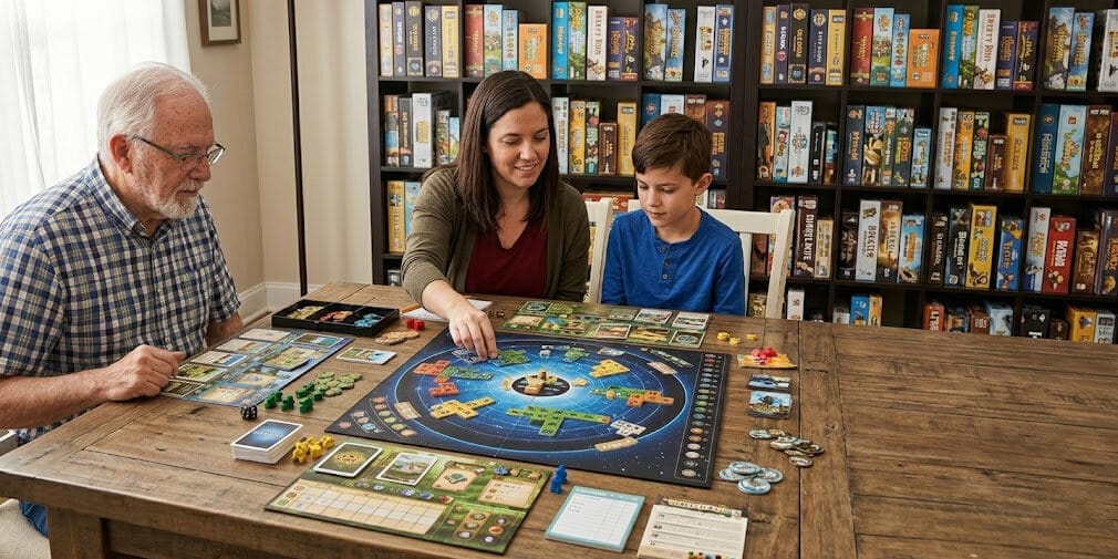 If you want one game that works for almost any family, go with Cascadia. It handles mixed ages gracefully, has a family variant to lower complexity for younger players, and produces a beautiful result every time. It’s the safest recommendation on this list for a first purchase.