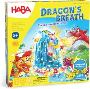 Dragon’s Breath has the most beautiful physical design of any game on our list, and that matters more than people realize — when a game looks magical, kids are invested before the first turn. The game centers on a column of ice wrapped around gem-colored rings, and on each turn, a dragon “breathes” on the column, causing the rings to slide down and distribute gems to players. The goal is to collect as many of your secret colors’ gems as possible. It sounds simple, and it is — but the physical satisfaction of watching the rings slide and the gems cascade is genuinely delightful every single time. Our 5-year-old testers gasped and cheered with each ring drop, and the gentle strategy of predicting where gems will fall develops early probabilistic thinking. HABA is a German game company with a long reputation for exceptional quality, and Dragon’s Breath exemplifies that heritage: the components are exquisite, the rules are kid-friendly, and the gameplay is just complex enough to feel rewarding. This is the game you pull out when you want to see pure, uncomplicated delight on a 5-year-old’s face.