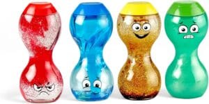 Kids can shake, swirl, and rotate the bottles to support emotional regulation and mindfulness during play therapy sessions.