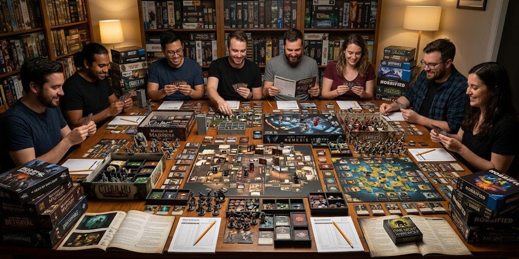 Your group loves strategy and wants depth → Arkham Horror 3rd Edition. This is the most strategically rich cooperative horror game on our list. Expect a longer session and a steeper learning curve, but also the most satisfying team victory when it happens.