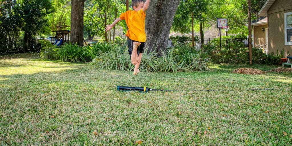 Match your sprinkler to your lawn shape. We tested every sprinkler on multiple lawn configurations and discovered that this matters more than coverage numbers suggest. For square or rectangular lawns, oscillating sprinklers provide the best coverage, while circular or irregularly shaped lawns benefit from rotary designs. Using the wrong type means you’re either missing sections or wasting water on driveways and sidewalks.