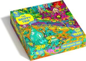 The Drippy Trip is the kind of puzzle that announces itself immediately — you open the box, see the artwork, and your first reaction is an involuntary grin. Illustrated by GHOSTSHRIMP, one of the original artists behind Adventure Time, the image carries that show’s signature blend of melancholy and joy: strange creatures, surreal landscapes, and a colour palette that feels both alien and somehow deeply comforting. For anyone who grew up watching Adventure Time or who loves that particular flavour of earnest, hand-drawn weirdness, this puzzle hits like a nostalgia trip you didn’t know you needed. But it works just as well for complete newcomers — the imagery is dense enough to keep you constantly engaged, and the Whamsy® sections feel especially well-integrated into the loose, flowing visual style. Our testers consistently described the solve as “meditative,” which is high praise. The Magic Shift® ending carries the dreamy, slightly off-kilter energy of the artwork all the way through. A genuinely unique puzzle that stands apart from everything else in the collection.