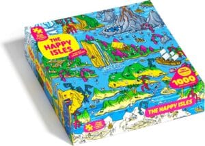 Every puzzle is printed on ultra-premium, 100% recycled FSC-certified “blue core” puzzle board. There’s no single-use plastic inside the box, no stock images, and absolutely no AI-generated art. Every illustration is a commissioned, original work. For anyone who cares about sustainability or supporting independent artists, that’s a meaningful difference.
