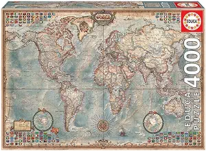 Enjoy a 4000-piece executive world map puzzle featuring detailed geography and global flags.