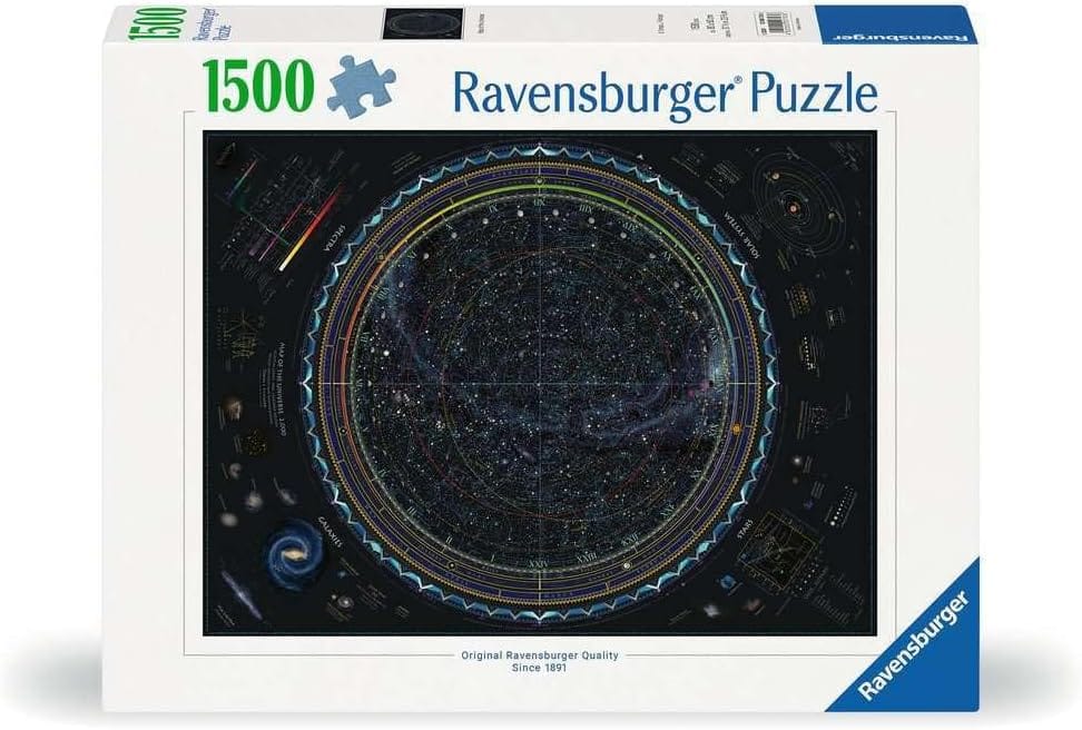 Celestial Universe Map Puzzle features 1,500 pieces of galaxies, planets, and star clusters.