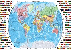 Enjoy a 1000-piece political world map puzzle featuring countries, borders, and national flags.