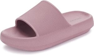 If the EverFoams are the practical, dependable choice, the BRONAX Pillow Slippers are the maximalist version. The soles are thick and cushioned to a degree that feels almost cartoonishly comfortable — our tester described standing in them as “like wearing a mattress on your feet.” They’re best suited for indoor use on hard floors, where the chunky sole absorbs impact in a way that’s particularly welcome after long days on your feet. The range of colors and patterns is wider than most slipper lines, which makes it easy to pick something that reflects her style. A few testers noted they required a brief break-in period before feeling perfectly molded — but after that, they became daily go-tos.