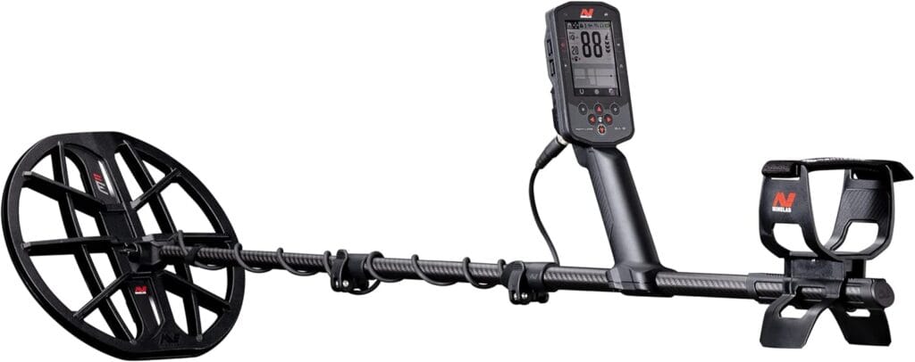 Fully waterproof metal detector submersible to 16 feet 5 meters for land and underwater treasure hunting.